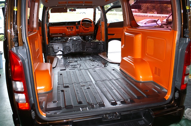 この度、大阪オートメッセ2015ご出展の寺本自動車商会様がイベント準備のデモカーに床貼りPROのRAINが装着されました!