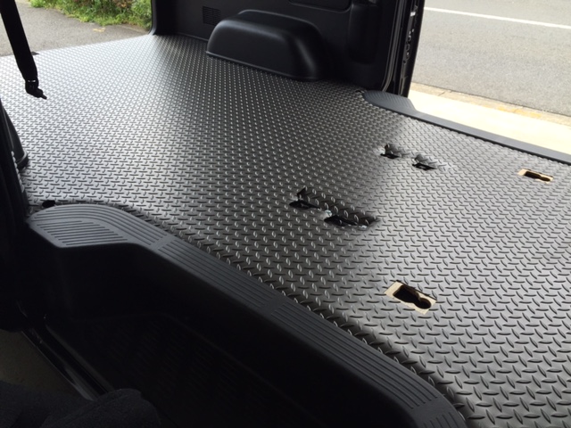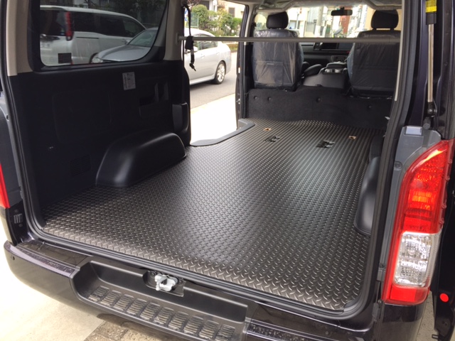 シーケンシャル6速のハイエースが来ました♪ 床張りはブッチリ人気のダイヤモンドガンメタです♪