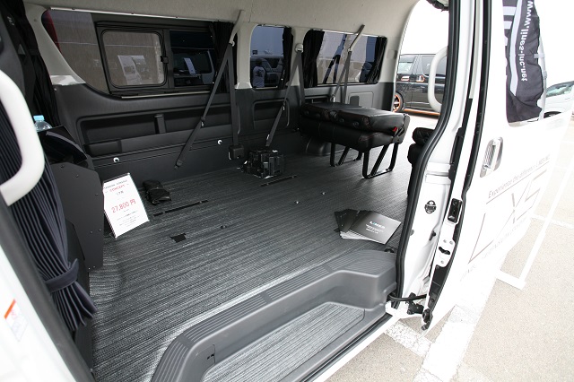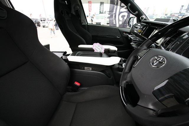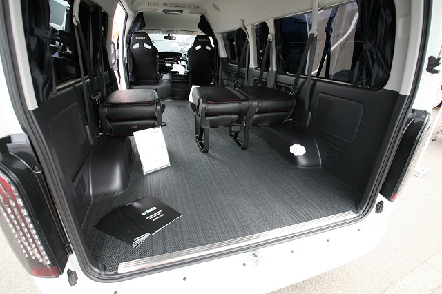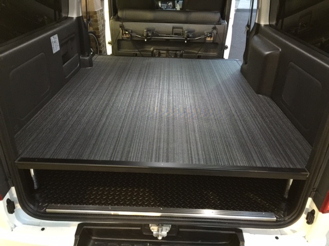 ハイエースS-GL 床貼りキットPro:ダイアモンドガンメタ+特注セパレートデッキ+アームレストType-S