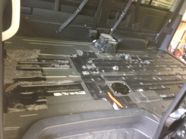 まずは座席を全て外して、床のカーペットも外します。