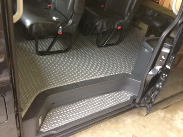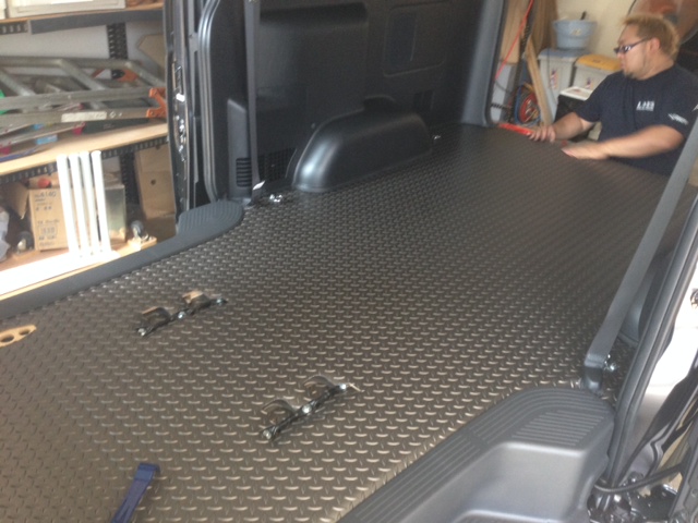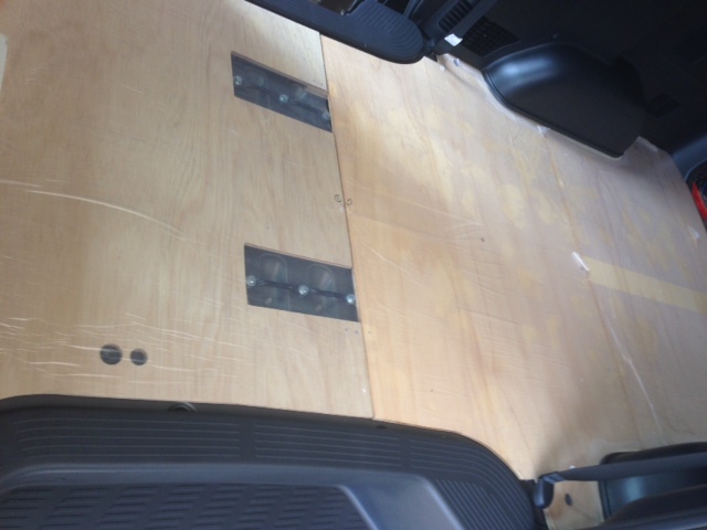 セカンドシートのシートベルトの取り回しがフロアで固定されているので、床張りもそれに対応できるように予め加工されております。