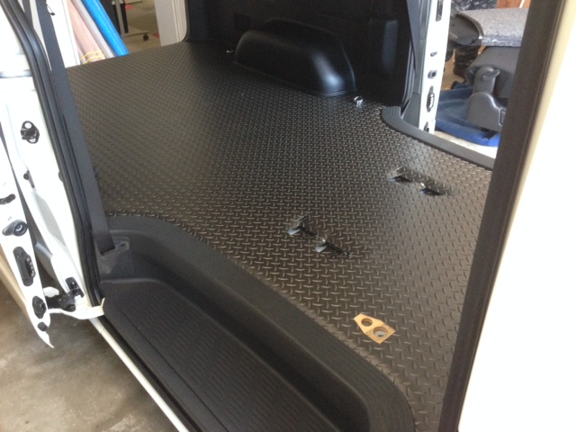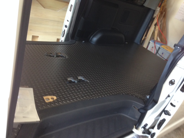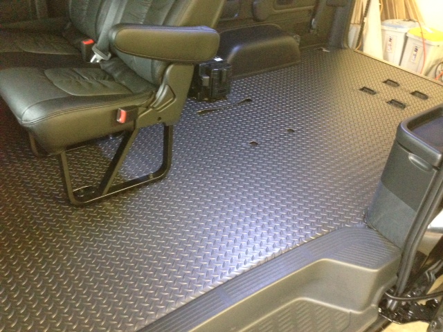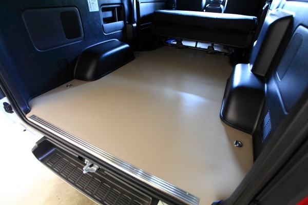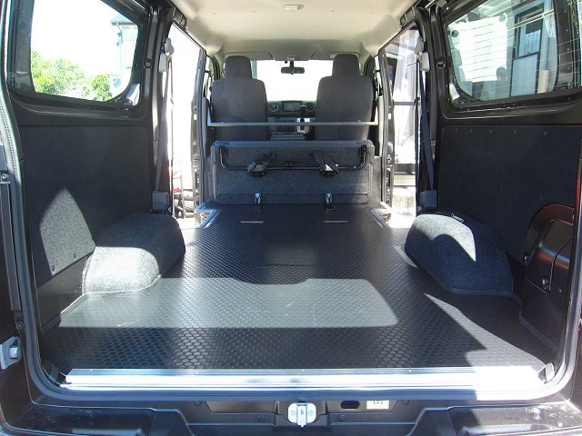 この度NV350をバイク用トランポとして使用するため、床貼り作業が完了いたしました。